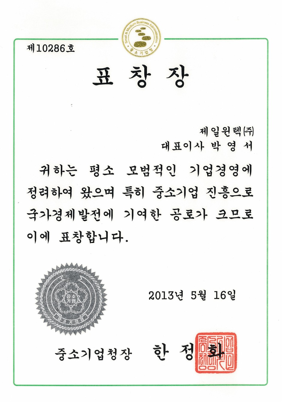 중소기업청-2013대구경북 중소기업인 대회 표창